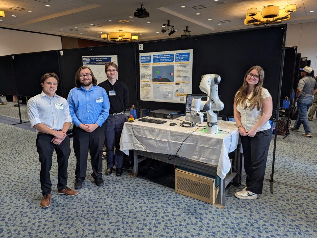 The Haptech team interfaced a Franka Research 3 robot arm with Chai3D for haptic rendering of virtual environment. Here is another picture of the setup.